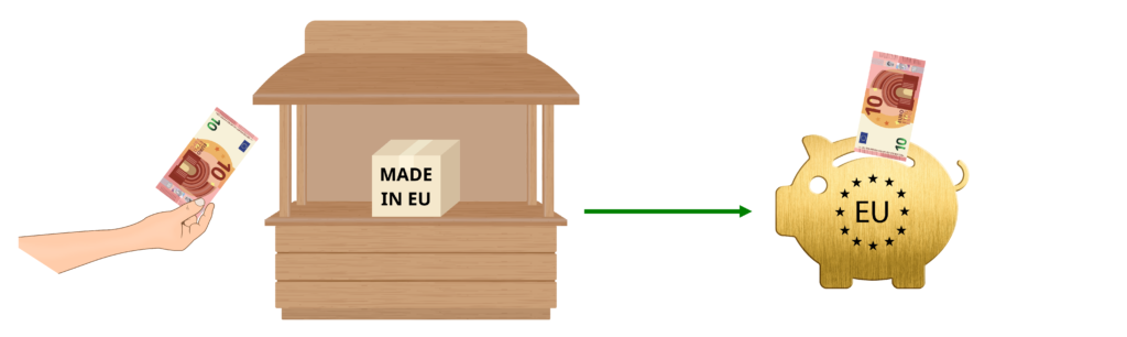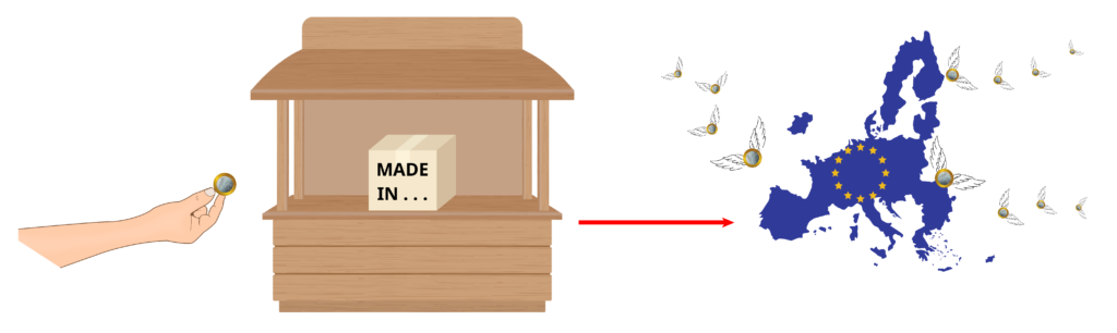 • i redditi di chi produce in EU vengono spesi qui, distribuendo la ricchezza prodotta nell’ambiente in cui viviamo e mantenendolo confortevole, stimolante e pulito.